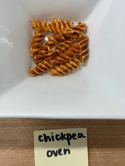 I gathered two of my family’s go-to pasta brands: De Cecco wheat pasta and Banza chickpea pasta. For each pasta brand, I had (1) a control group, (2) a pan-toasted group, and (3) an oven-toasted group. The control group was the plain untoasted pasta, and it is the standard to which the other groups were compared.